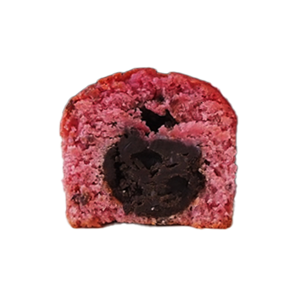 マフィンの中心に北海道のチョコレート専門店「UP-N」のトリュフチョコレートを入れました。